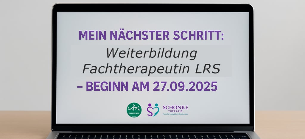 Am 27.09.2025 starte ich meine Weiterbildung zur Fachtherapeutin für Lese-Rechtschreibstörungen (LRS) beim Fortbildungsinstitut LOGUAN. Damit gehe ich in Wuppertal den nächsten großen Schritt, um Kinder mit einer Lese-Rechtschreib-Störung (LRS) noch gezielter unterstützen zu können.