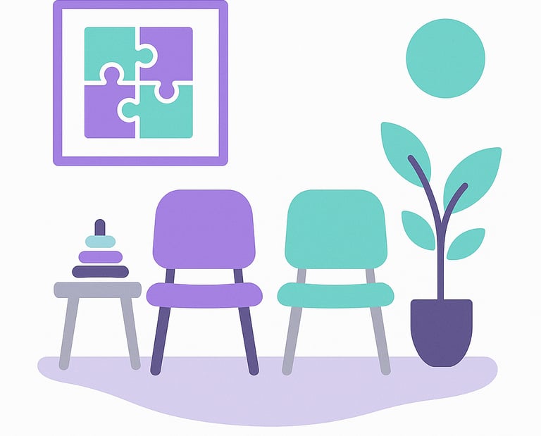 Dahinter liegen die Therapieräume, die für logopädische und ergotherapeutische Behandlungen genutzt werden.